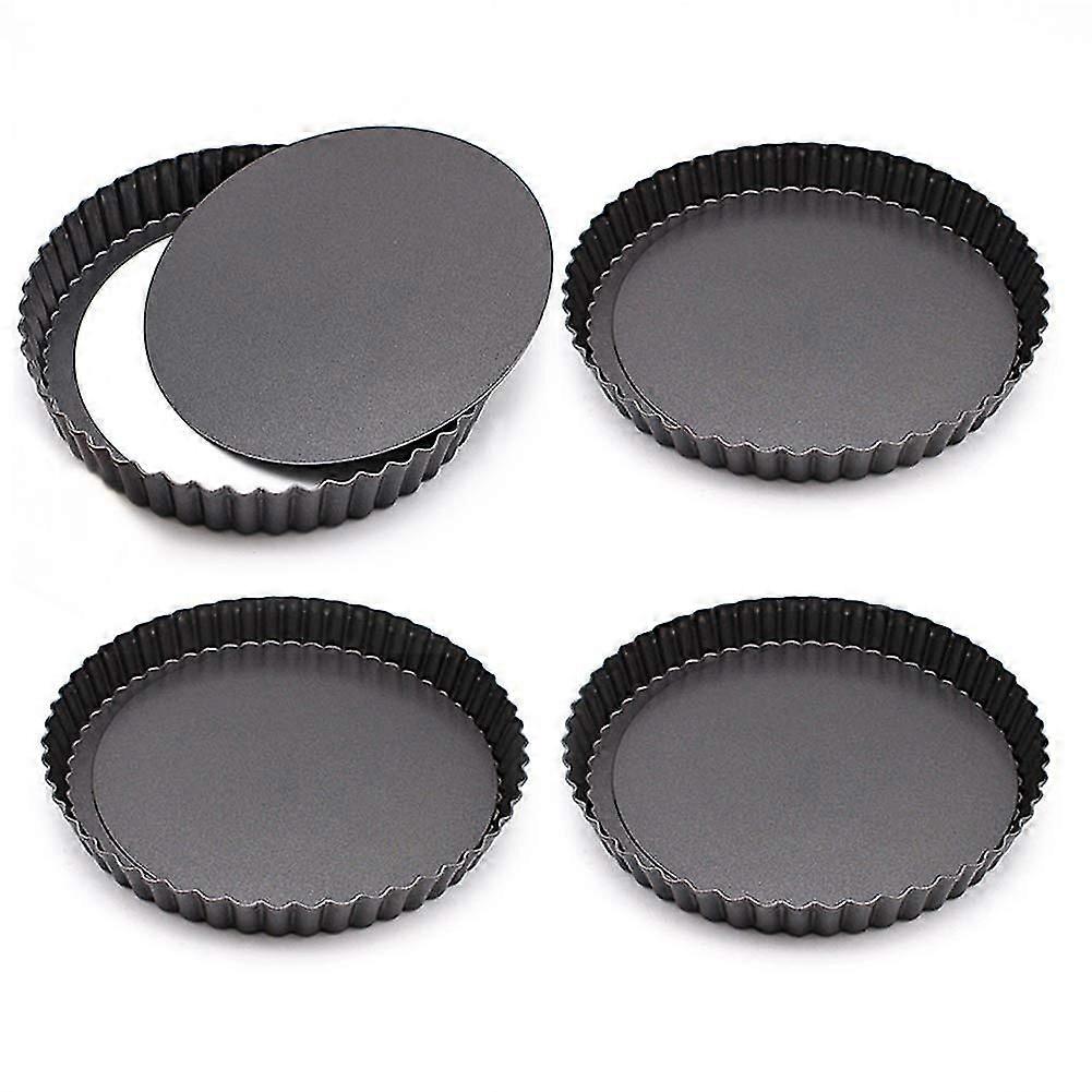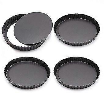4 Pack Tart Pan, Mini Non-stick 4 Inch Tart Tins Black Round Tart Quiche Pan Removable Bottom For Pie, Pizza