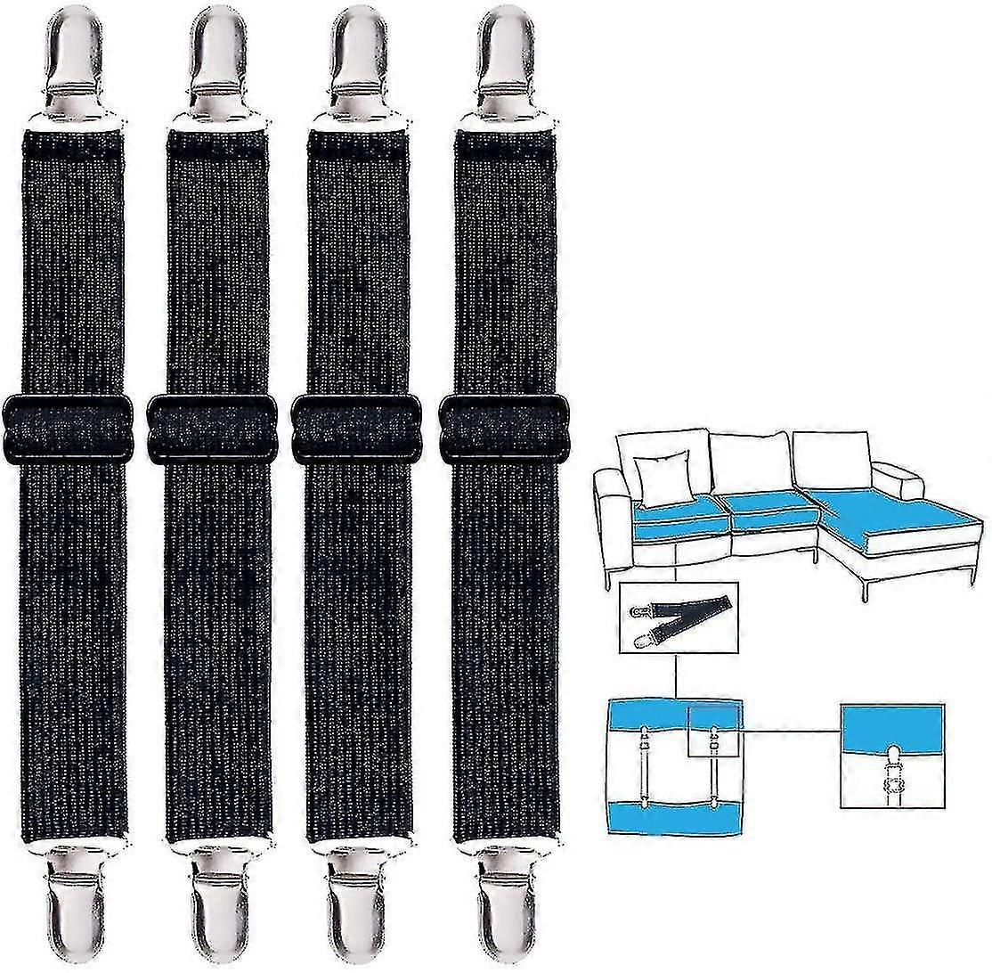 4 Pack Adjustable Heavy Duty Bed Sheet Clips, Cover Grippers Suspenders Holder Bed Sheet Fasteners, Fitted Sheet Clips, Black