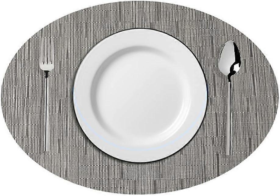4 pack Oval Placemat,PVC Western Table Mat,Woven Heat Insulation Mat,Table Mat,Heat Insulation,Waterproof,Oil-Proof,kitchenware. (Grey,45X32CM)