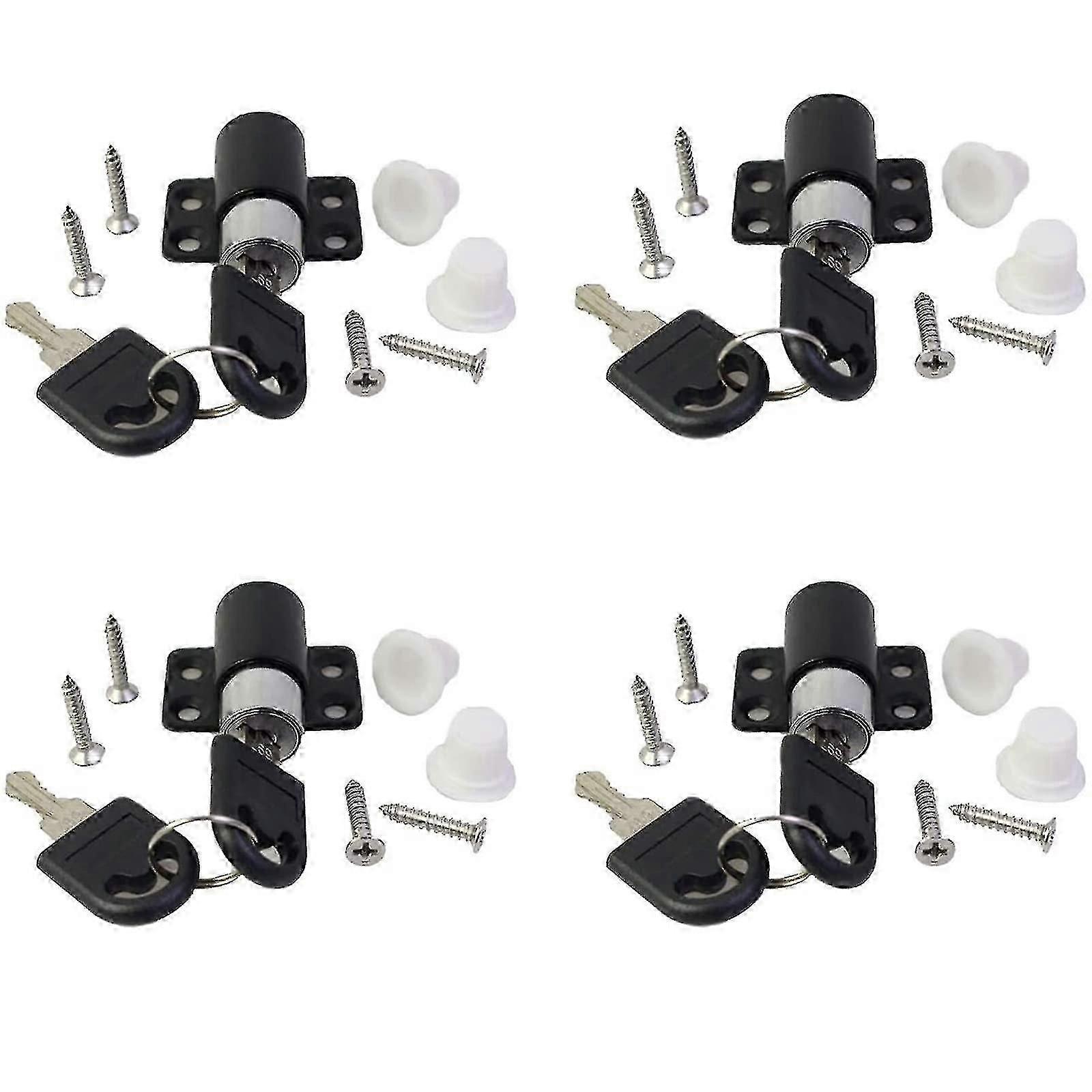 4PCS Window Door Locks for Kids4PCS Sliding Door Locks with 8 Universal Keys, each sliding door locks comes with 2 keys (the keys are universal). Easy Installation Supplied with all security fixing accessories including stainless steel screws. (Attention: Drilling is necessary; The white cap is used to decorate the hole made by the electric drill.) Zinc AlloyMade of zinc alloy, copper, anti-rust, durability and quality guaranteed. Child Safety LockPrevents accidents due to open windows and unlocked doors, helpful to protect your children. Suggest the locks be adjusted up and down for maximum security. ApplicationSuitable for most hinged or sliding doors and windows. Perfect for home, public, hospitals, hotels, schools and other children's places. How to use 1Measurement Measure the gap between inside and outside Windows (should be less than 1cm); Measure the width of the window frame (should be more than 2.5cm). 2Without the key, you can press the lock cylinder to lock directly.