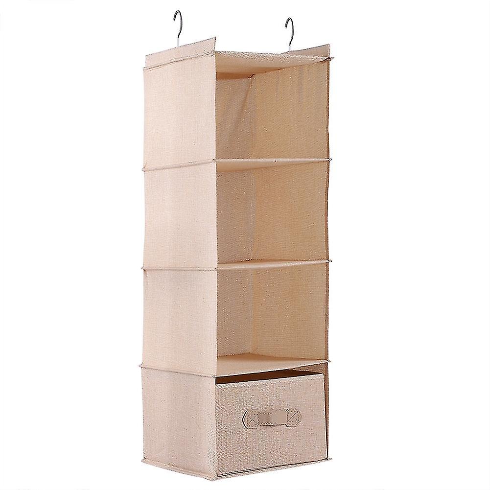 This hanging closet organizer is perfect for storing sweaters, linens, socks, underwear, baby clothes, shirts, pants or slacks and other accessories. It will help you organize and create space-saving storage in bedroom or hallway closets and more! Specification: Material: Linenette, Plastic Board Color: Gray, Beige (optional) Hanging Closet Organizer Total Size: Approx. 84*29*29cm/33.07*11.42*11.42in Drawer Size: Approx. 27.5*27.5*17.5cm/10.83*10.83*6.89in Weight: Approx.955g/33.7oz Package List: 1 * Hanging Closet Organizer Note: 1. Please allow 0~1 inch error due to manual measurement. Thanks for your understanding. 2. Monitors are not calibrated same, item color displayed in photos may be showing slightly different from the real object. Please take      the real one as standard. Features Easy to Access: The hanging closet organizer is open shelves, create an easy way to access and retrieve folded shirts, pants and other clothes Wide Applications: The drawer helps to stow away, conceal and organize your items,sweaters, short sleeves, coats, shoes and more can be stored, keep your home clean and tidy Large Capacity: 2 pieces 360° rotatable hanger is heavy duty, of large capacity and not easy to deform over time Premium Material: The hanging closet storage organizer is made from premium materials with delicate stitching, it is soft, breathable, washable and durable Widely be Used: The clothes hanging organizer can be hung on closet rod, clothes bar, laundry rack, offering a clean and tidy appearance to your home