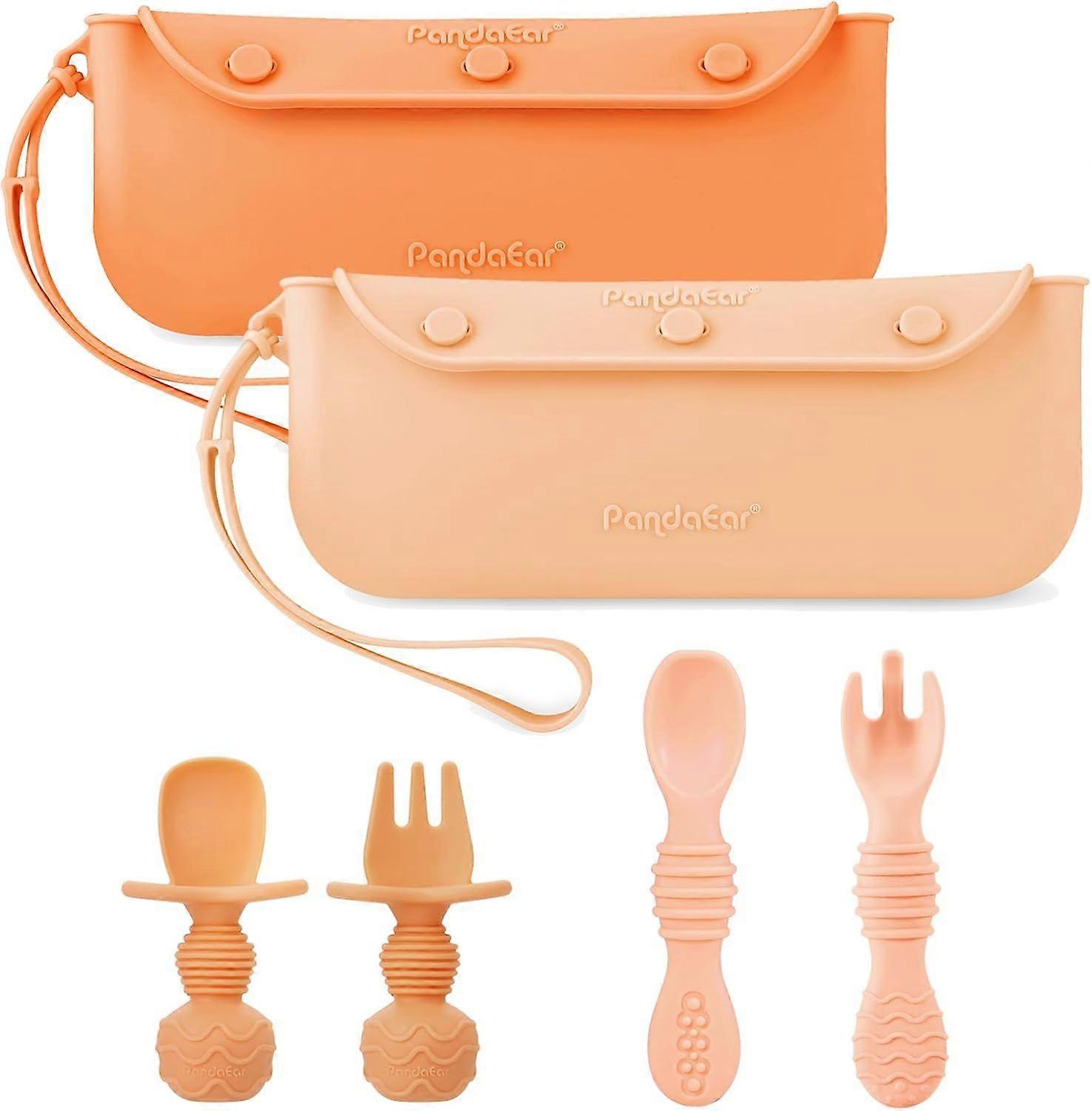 4 Pack Silicone Baby Spoons & Forks with 2 Pack Baby Cutlery Holder Bags, Baby