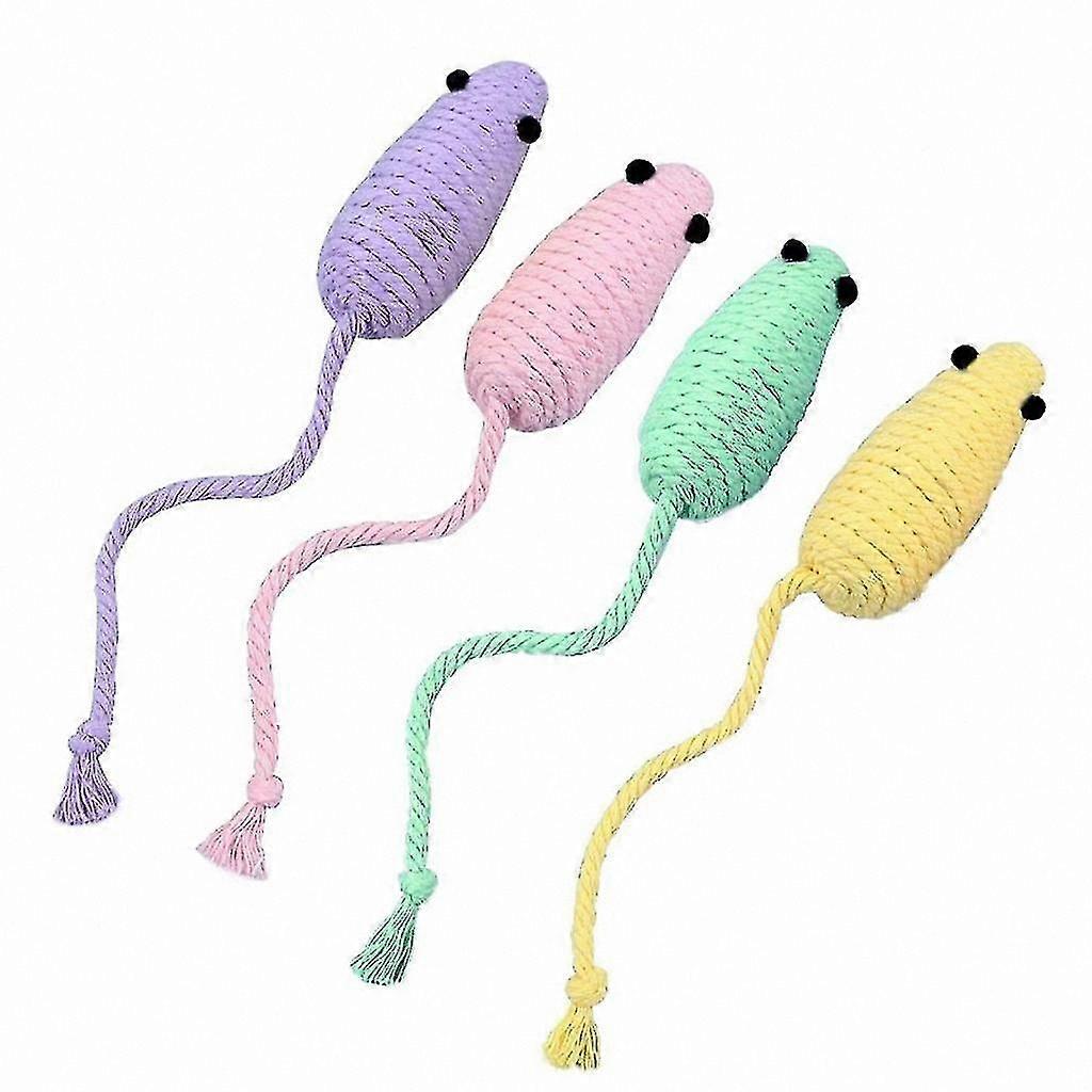 Features: Interactive Pet Mice Toy: This pet mice toy features a rope and squeaker, designed for kittens and dogs to chase, hunt, and swat. It helps attract your kitten's attention, encourages play, brings joy, reduces boredom, and provides companionship to help ease loneliness. Colorful Cat Squeak Animal Toy: This cat toy comes in 4 assorted colors and produces a rustling sound when squeezed. It stimulates natural chasing instincts, easily captures your kitten’s attention, and provides entertaining indoor or outdoor play. Promotes Pet Health: The toy can be hung for interactive play, featuring an active design that encourages pawing and hunting behavior. It helps keep pets active and supports healthy exercise, especially beneficial for overweight pets. Safe Materials: Made from quality knitted cotton ropes with non-toxic dyes, this toy is safe for chewing and scratching. It is durable and resistant to tearing, built to withstand regular use by kittens. Ideal Gift Choice: A great gift for pet owners, perfect for Christmas, New Year, or any occasion. Suitable for indoor play and supports the physical well-being of kittens and small pets. Specifications: Material: Cotton Rope Product Dimensions: Approx. 20 x 3 cm / 7.87 x 1.18 inches Quantity: 4 Pieces per Set Note: Please allow 1-2 cm error due to manual measurement. Ensure you are comfortable with this before purchasing. Due to differences in monitor displays, the actual color may vary slightly from the image. Package Includes: 4 x Kitten Mice Toys