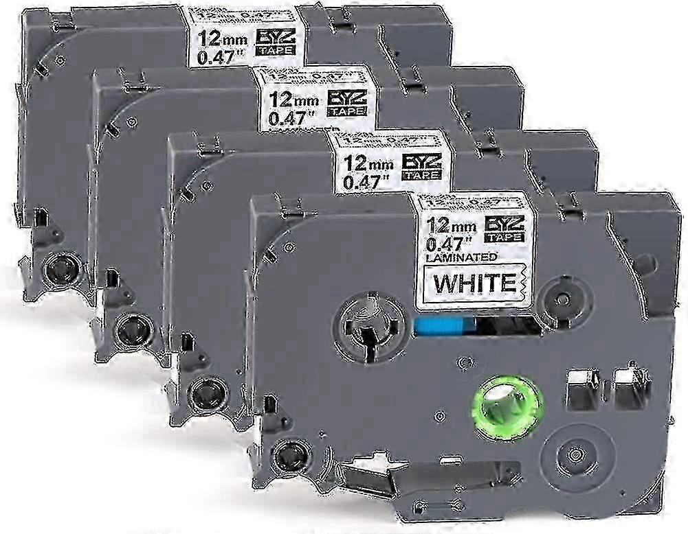 4-Pack 12mm x 8m Black-on-White Label Tape Cassettes for Brother