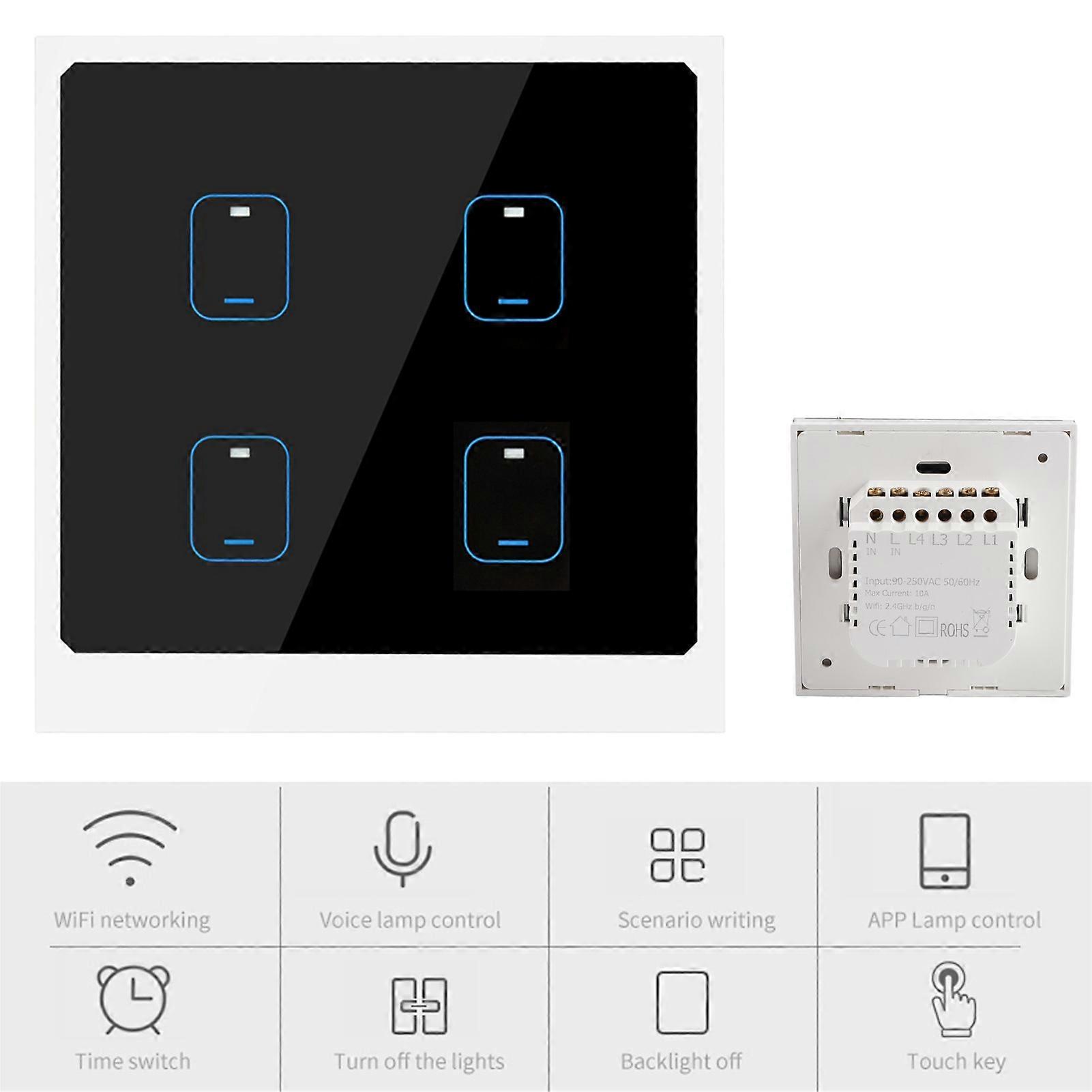 4 Gang Smart WiFi Touch Light Switch APP Remote Voice Control 90