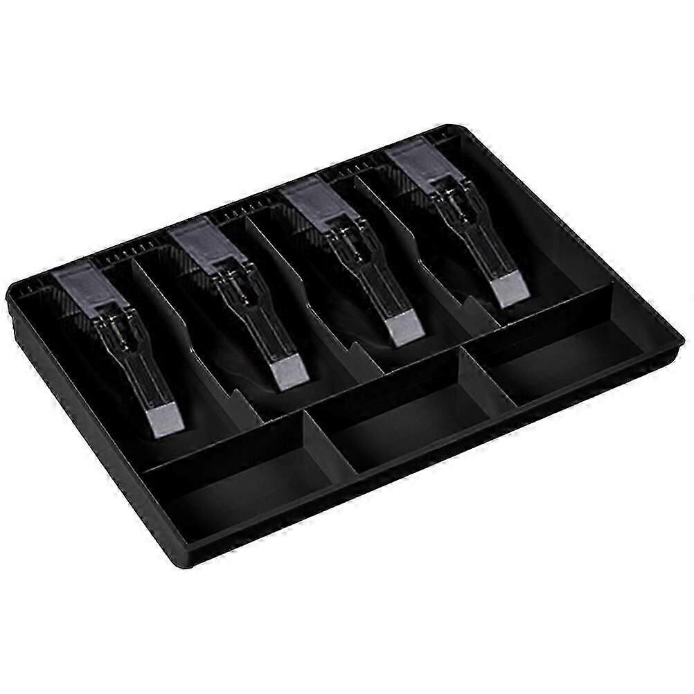 4 Bills and 3 Coins Cashier Drawer Cash Collection Box Insert Tray for Market Bank Home (Black)