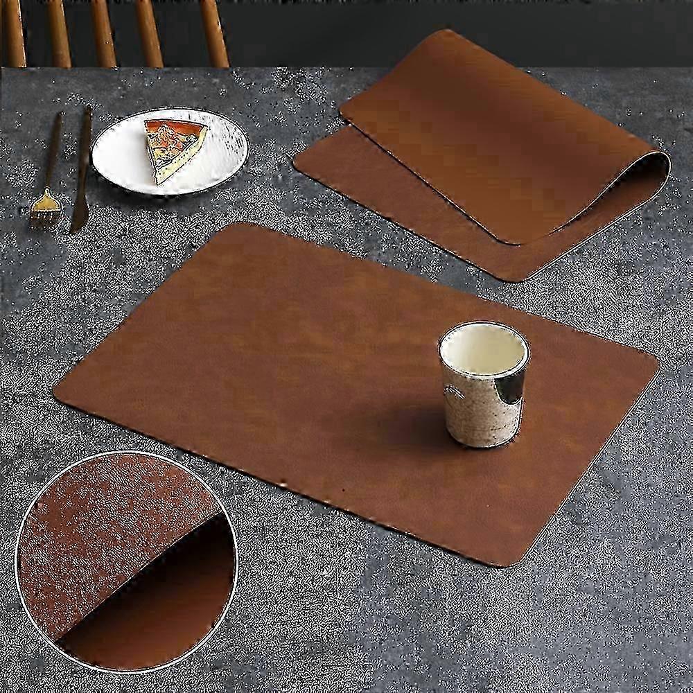 4pcs, Leather Placemats, Rectangular, Waterproof, Heat Insulated Table Mats For Dining Kitchen, Brown Cowhide Pattern Design