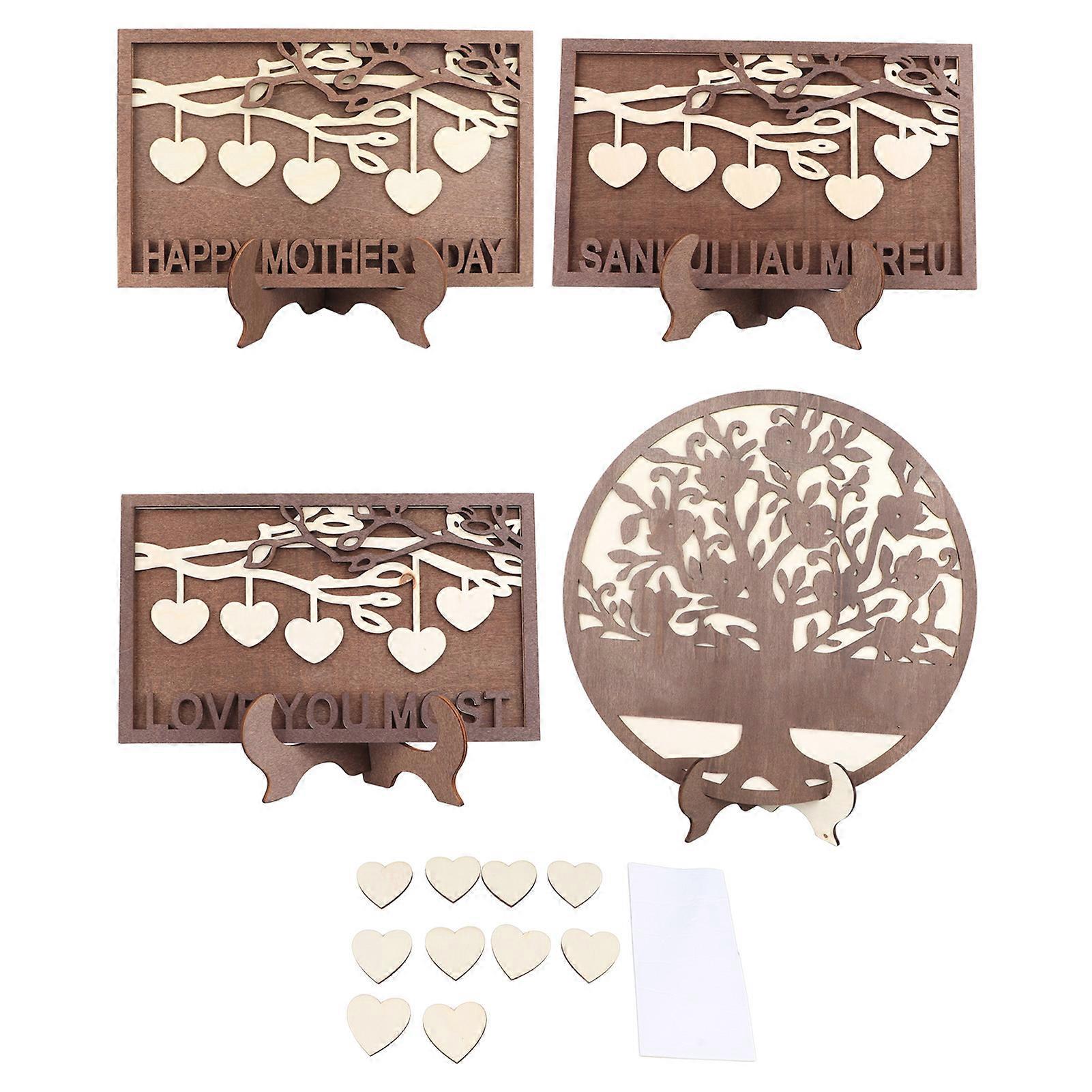 4Pcs Wooden Family Names Tree Frame Wooden Sign Engraving Frame Desktop Ornaments for Home Decoration