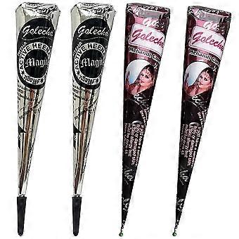 4 PCS Henna Temporary Tattoo Natural Tattoo Colour Black and Brown Temporary Mehndi Tattoo Sticker Temporary Tattoo with Tattoo Stencils