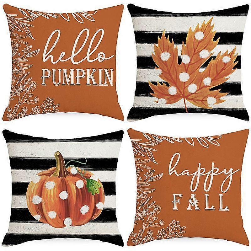 4pcs Fall Pillow Covers Decorations 18 x 18 Inch Autumn Throw Pillow Covers Pumpkin Maple Leaves Harvest Pillow Covers Thanksgiving Home Decor Cushion