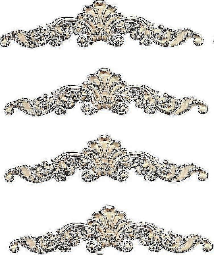 4 Pieces Decorative Molding Wood Ornament Wood Carved Decorative Wooden Long Carved Onlay Applique