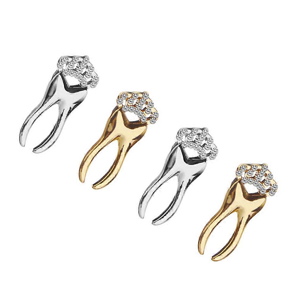4PCS Diamond Encrusted Crown Tooth Brooch Mini Dentist Lapel Pins for Professional Attire and Elegant Party Accessories in Gold and Silver