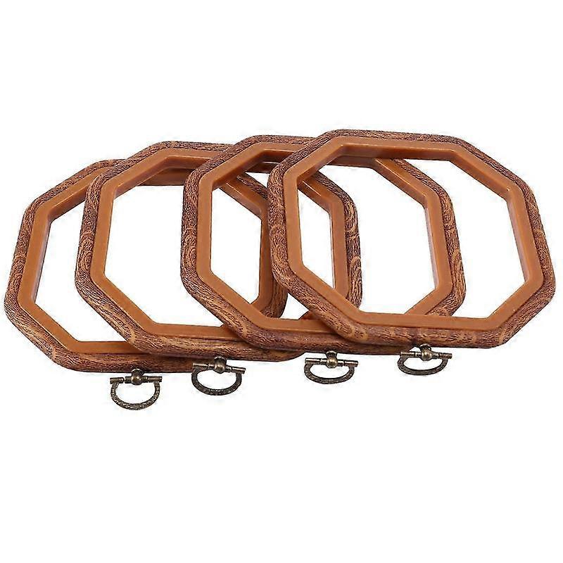 4PCS Octagon Embroidery Hoops Imitated Wood Cross Stitch Hoop Set Display Frame for Art Craft Handy