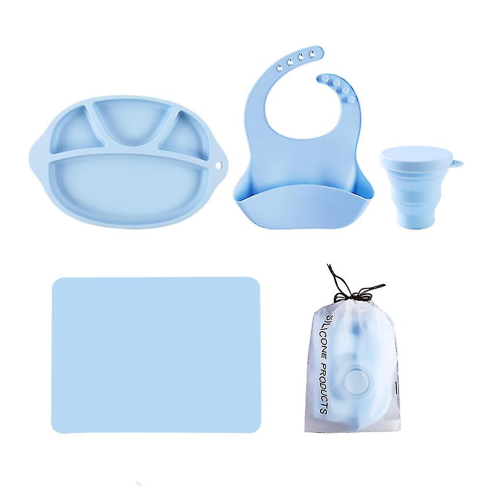 4 Pieces Tableware Baby Dinner Set In Drawstring Bag, Silicone Baby Bib, Divided Plate And Collapsible Cup For Children Babies, Premium Food Grade Sil