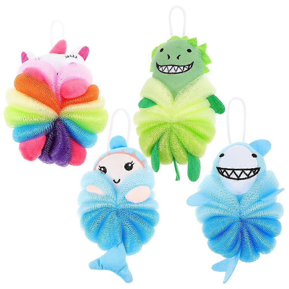 4pcs Kids Skin Cleaning Scrubbers Cartoon Bath Sponge Body Exfoliating Balls