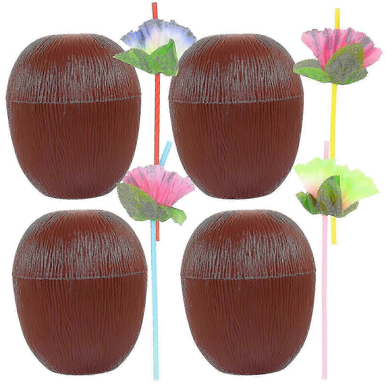 4pcs Coconut Cups With Straws Simulation Coconut Drinking Cups Hawaiian Party Coconut Shaped Cups12.50X10.50X10.50CM SZRH A-J