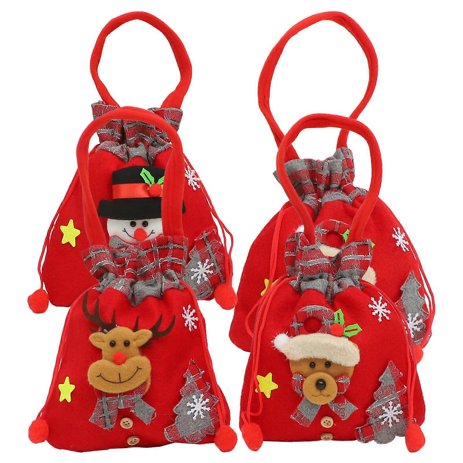 4 pcs Christmas Gift Bags Xmas Gift Wrapping Bags Cute Drawstring Bag Decorative Drawstring Bag