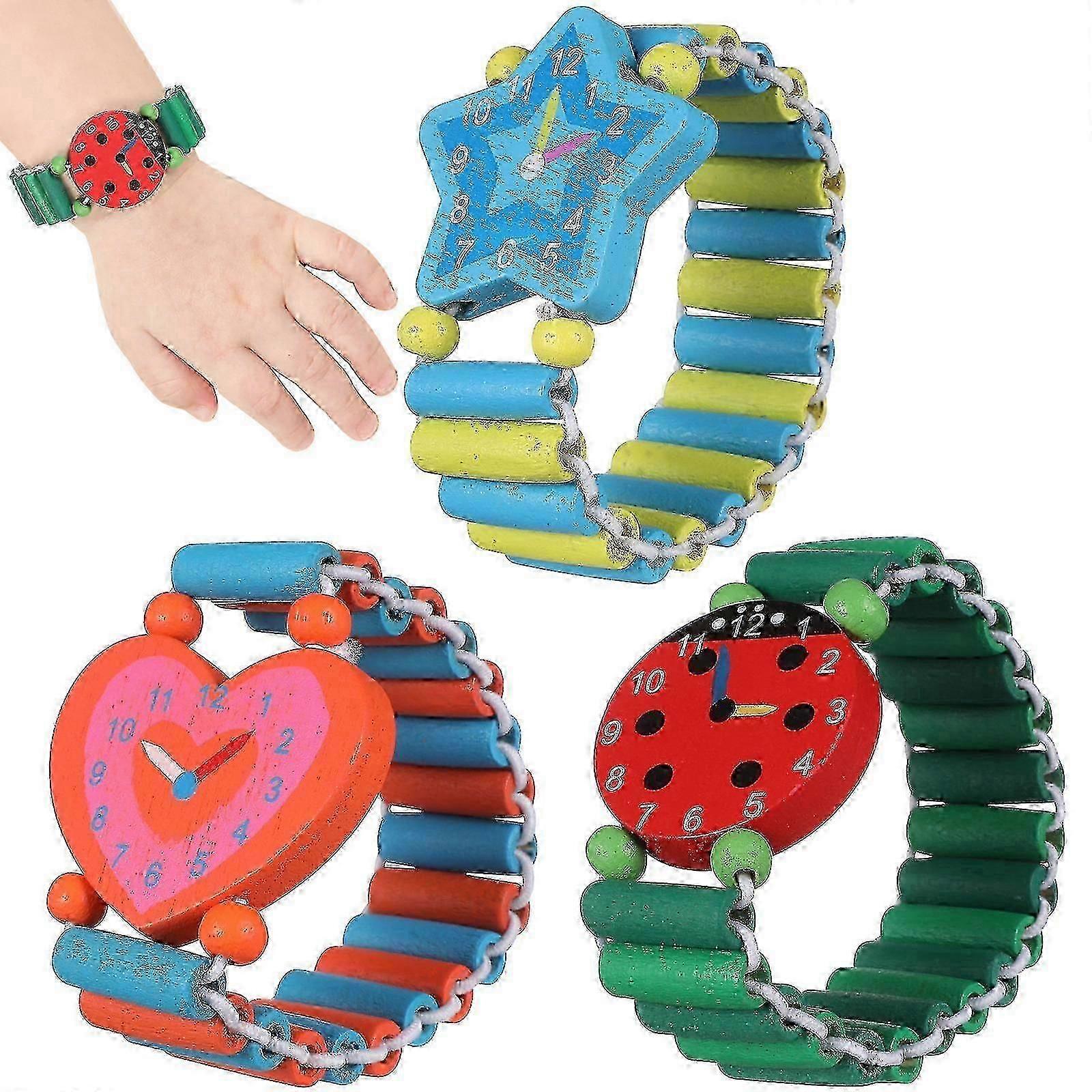 4 Pcs Educational Toys Girls Wooden Hand Watch Toy Children Wristwatch Toy Kids Wristband Stretchy Watch Toy(Style and color random)
