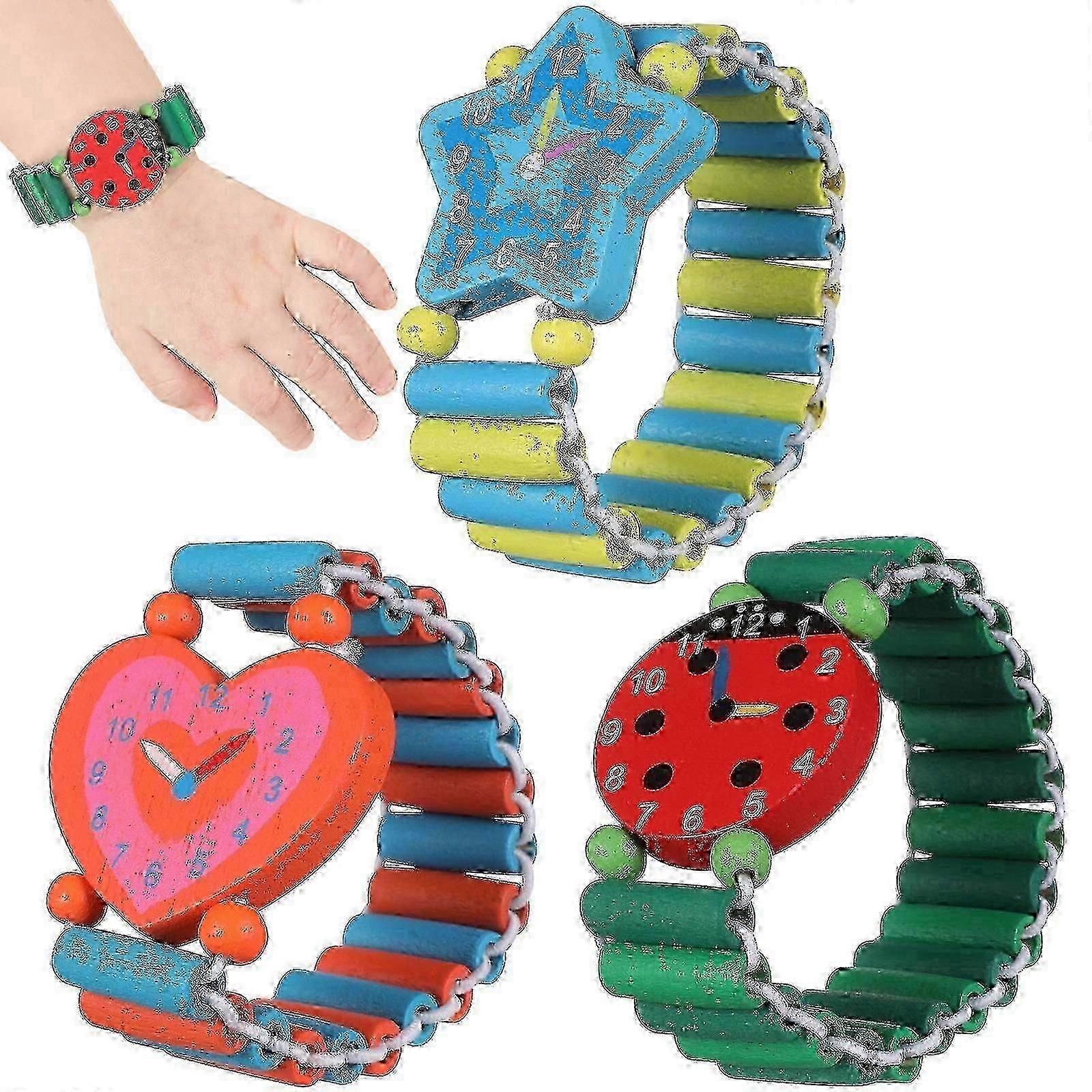 4 Pcs Educational Toys Girls Wooden Hand Watch Toy Children Wristwatch Toy Kids Wristband Stretchy Watch Toy(Style and color random)