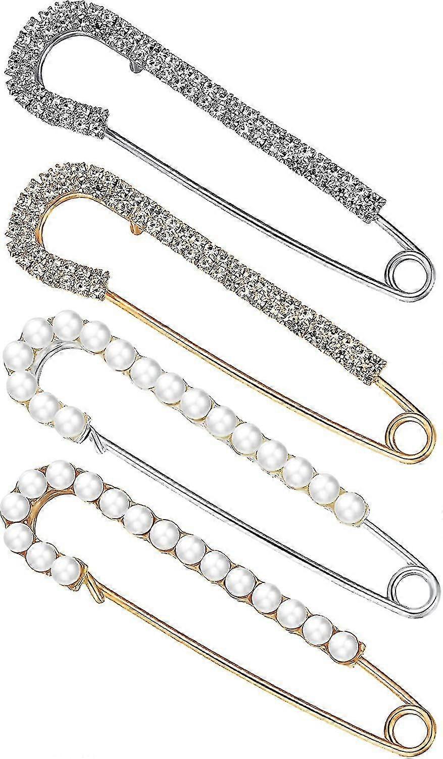 4 Pieces Women Brooch Pins Sweater Shawl Clips Faux Crystal And Pearl Brooches, 2 Styles Gold, Silver