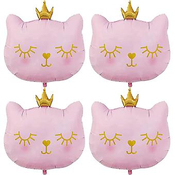 4pcs Crown Cat Foil Balloon Pink Large Crown Cute Cat Kitten Balloons For Birthday Baby Shower Wedding Kids Kitten Pet Themed Cartoon Party Decoration