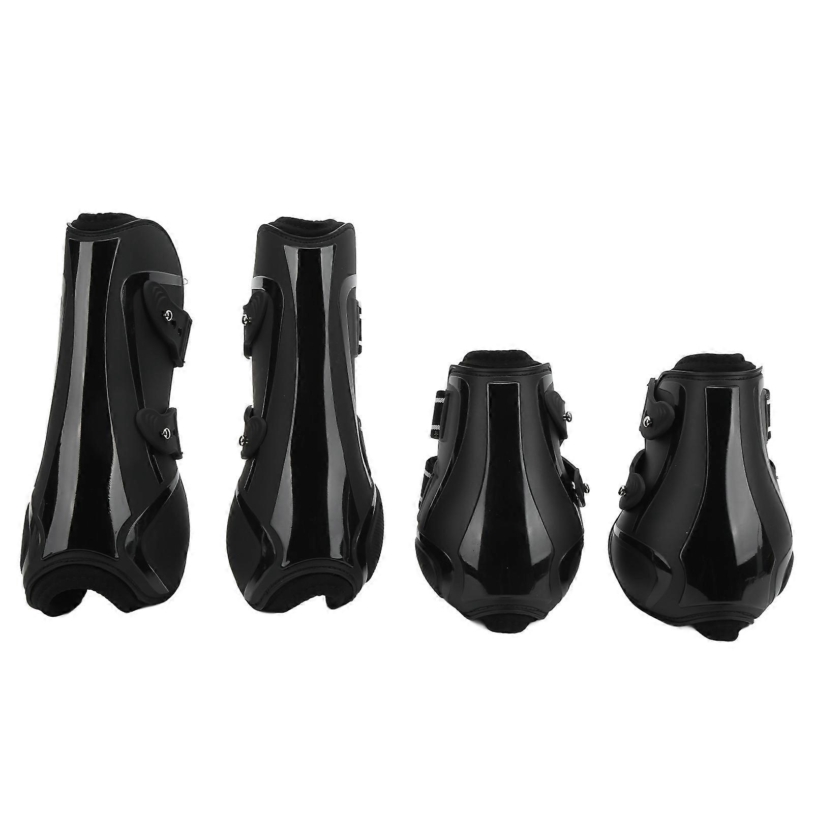 4pcs Horse Leg Protector PU Shell Breathable Front Hind Horse Leg Boots for Any Weather ConditionsBlack XL