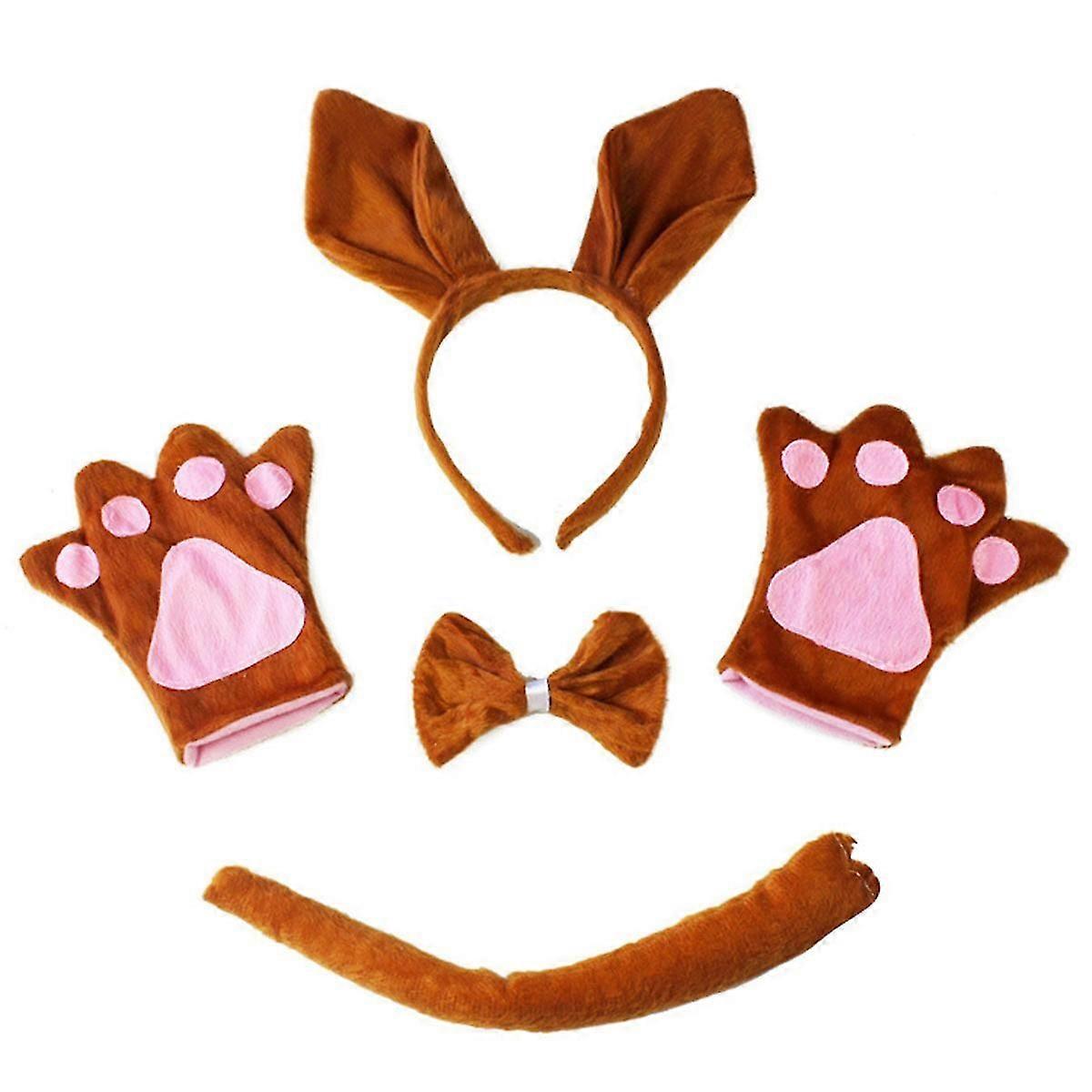 4pcs Party Parent Child Performance Costume Cartoon Kangaroo Style Costume Suit Headband Bow Tie Tail Role Playing Animal Props Set Performance Props