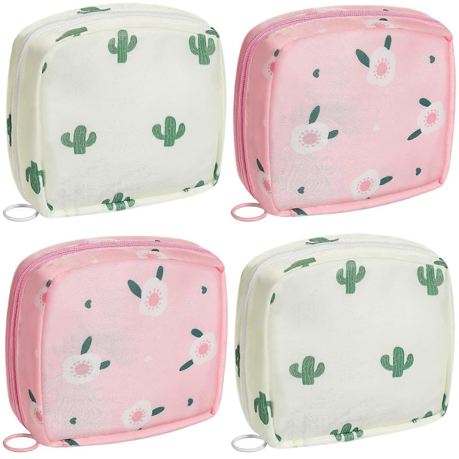 4 Pcs Small Makeup Bag for Purse Portable Travel Cosmetic Bag Organizer with Zipper (Plants)