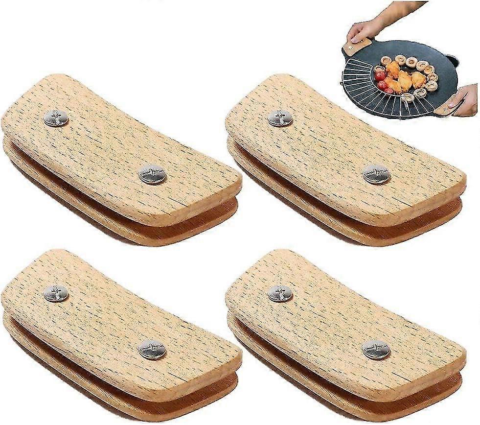 4pcs Wooden Grill Pan Handle Holder Heat Resistance Pan Handle Cover Non-slip Cookware Handle Grip Barbecue Pan Handle Grip