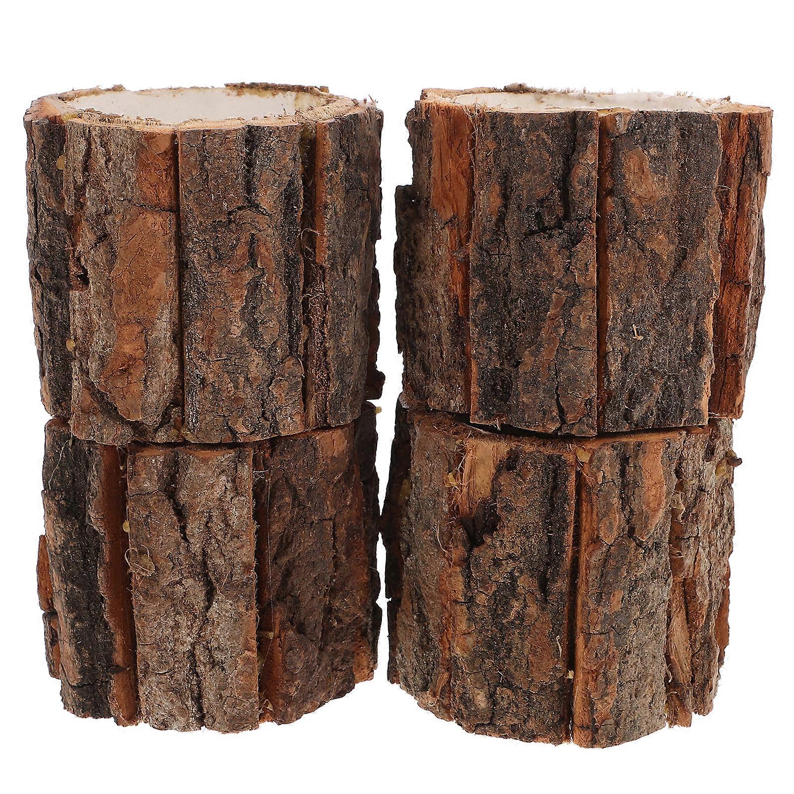4Pcs Wooden Flower Pot Rustic Flower Planters Small Plants Holder for Indoor Home Decor
