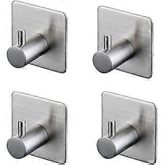 4 Pieces 3m Adhesive Hook, Bathroom Wall Hook, Stainless Steel, Silver