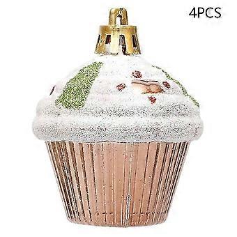 4Pcs Painted Glitter Cupcake Festival Xmas Decoration Home Christmas Tree Hanging Ornament
