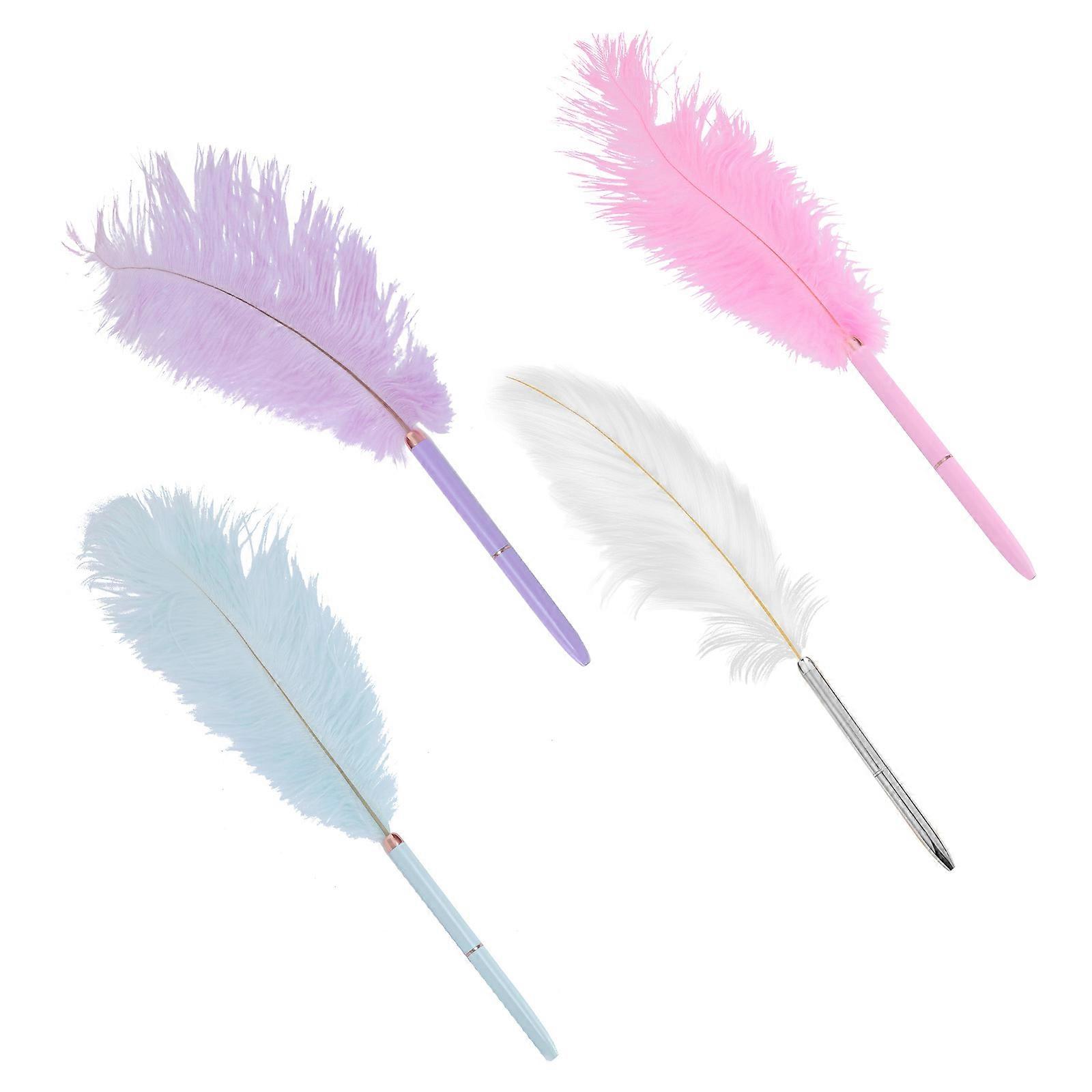 4pcs Feather Pen Ballpoint Pen Oil Pen Gift Pen Smooth Writing Pen Wedding Signing Pen School Office Supplies Multicolor