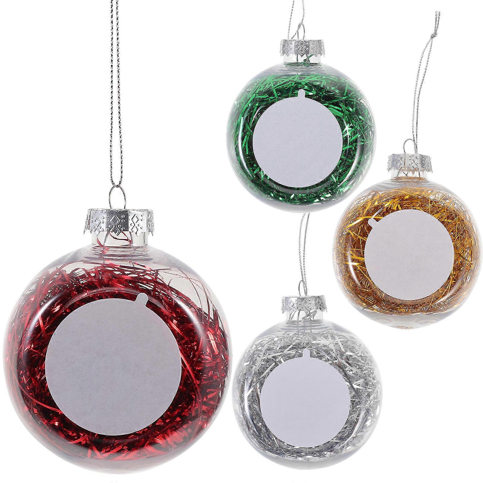 4pcs Christmas Tree Ball Ornaments, Sublimation Blank Baubles for Xmas Party Decoration, Lightweight Silver Green Plastic, Easy to Hang for Tree