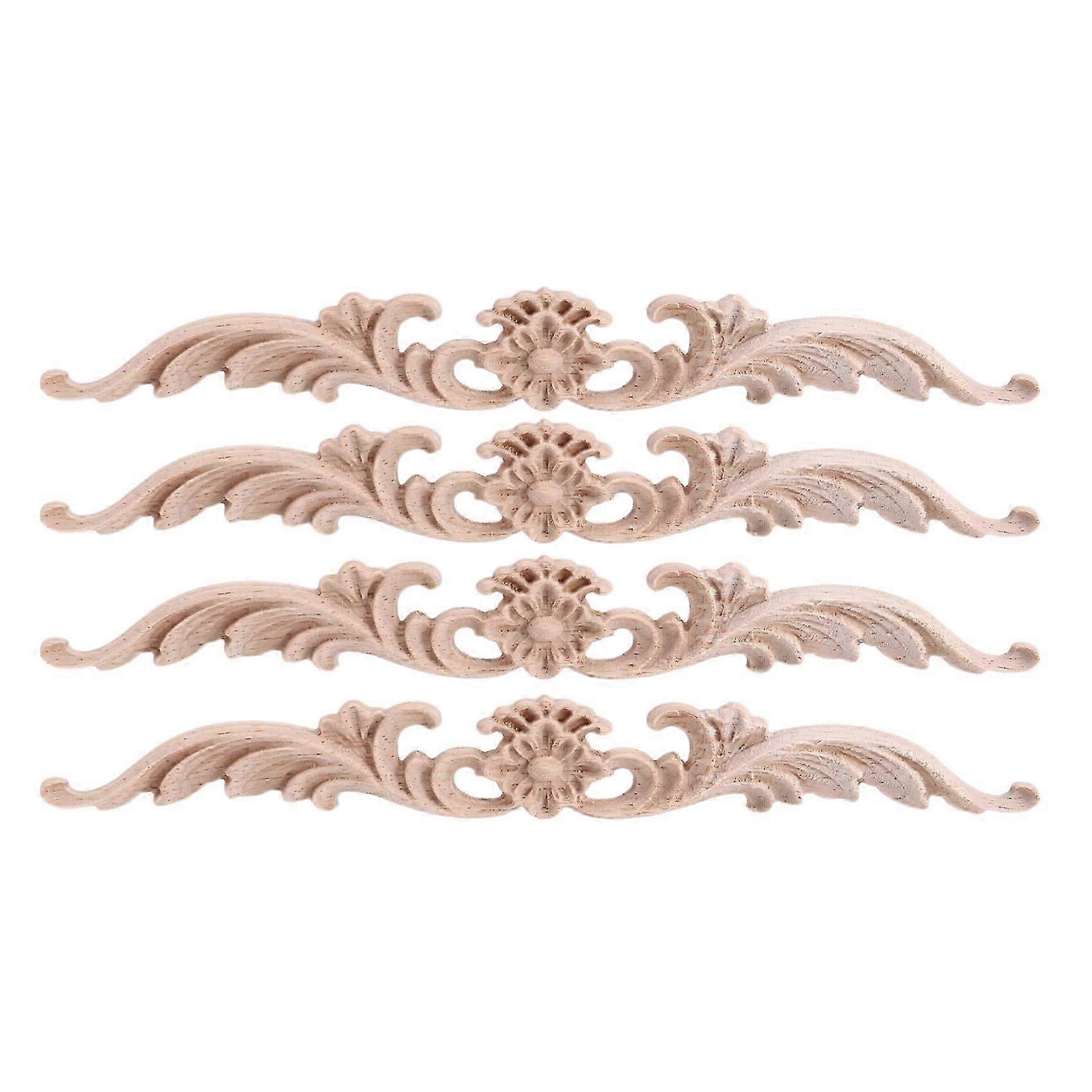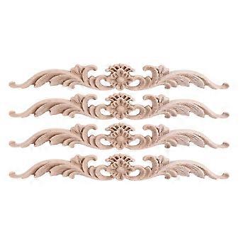 4pcs Wood Appliques And Onlays, Unpainted Diy Decorative Wood Carved Onlay Appliques For Bed Door Cabinet Wardrobe