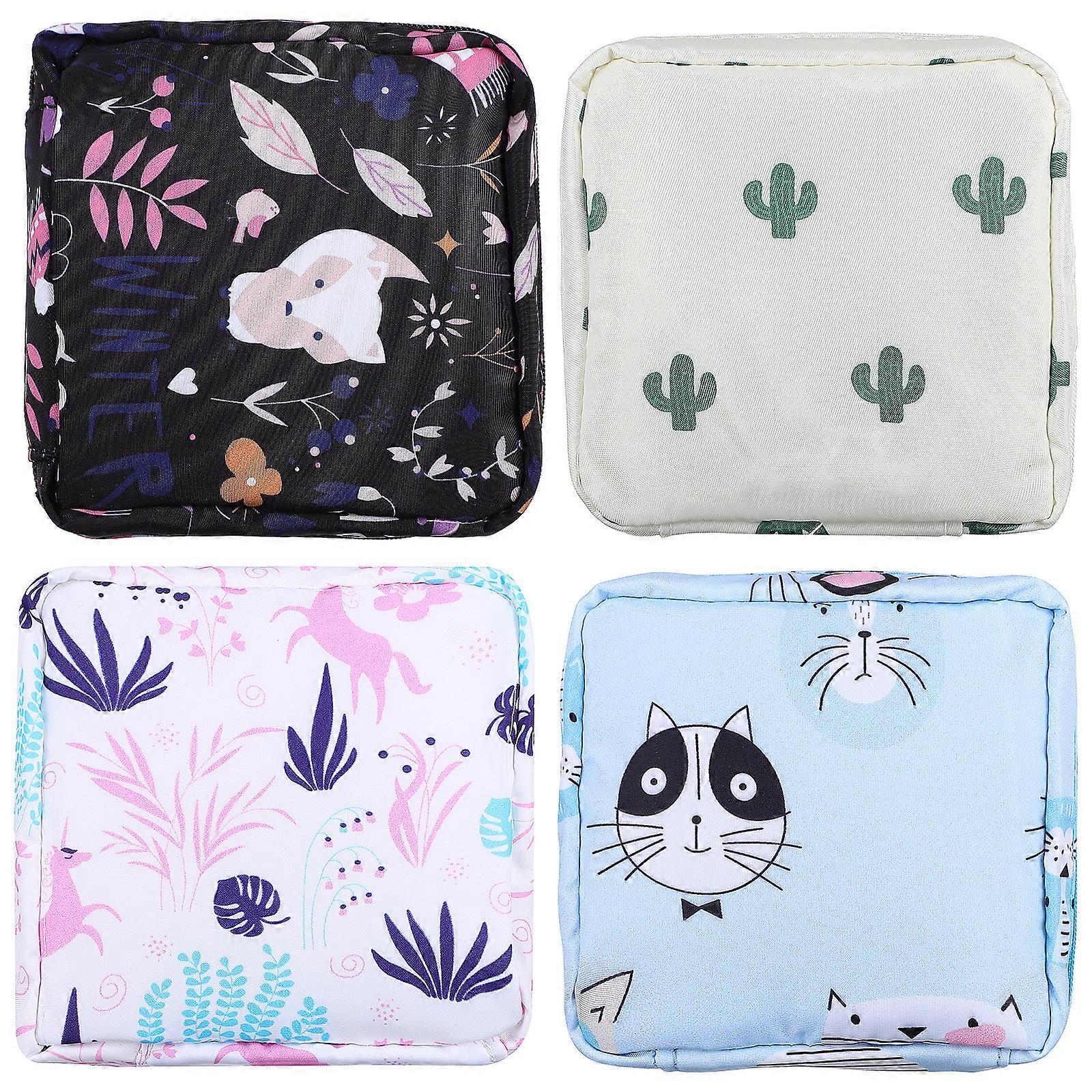4 Pcs Zipper Sanitary Napkin Bags Napkin Pads Collect Bags Portable Packages for Women Girls