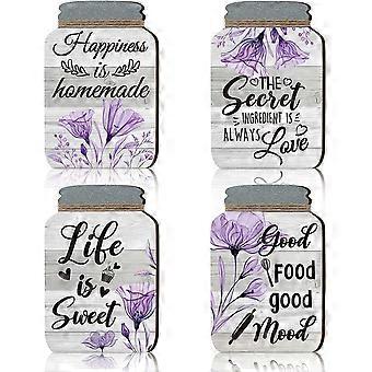 4 Pcs Fall Kitchen Wall Decor Mason Jar Set Wooden Rustic Home Decor Inspirational Kitchen Decor Farmhouse Kitchen Signs Wall Decor Hanging Mason Jar