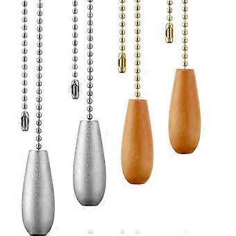 4 قطع سلسلة مروحة السقف تسحب سلسلة سحب سلسلة سحب خشبية لسلسلة مروحة مصباح ضوء السقف (لون فضي وخشب)