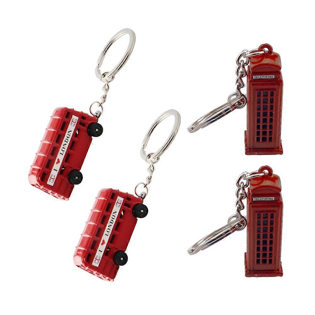 4pcs Metal Key Chain with Bus & Pendants Creative London Souvenir Key Holder Gift Accessory, Red Color, Stylish Design