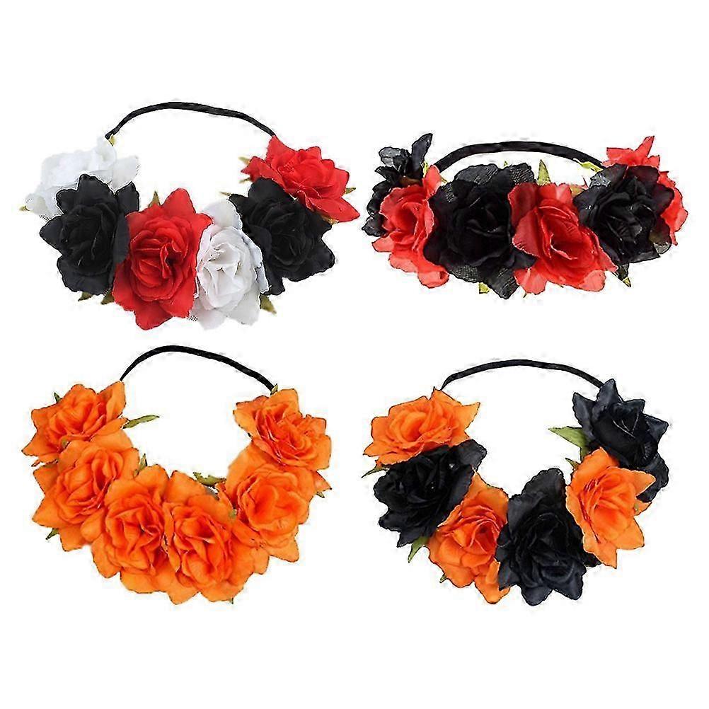 4pcs Elastic Flower Hairbands Floral Headbands Halloween Cosplay Costume for Women