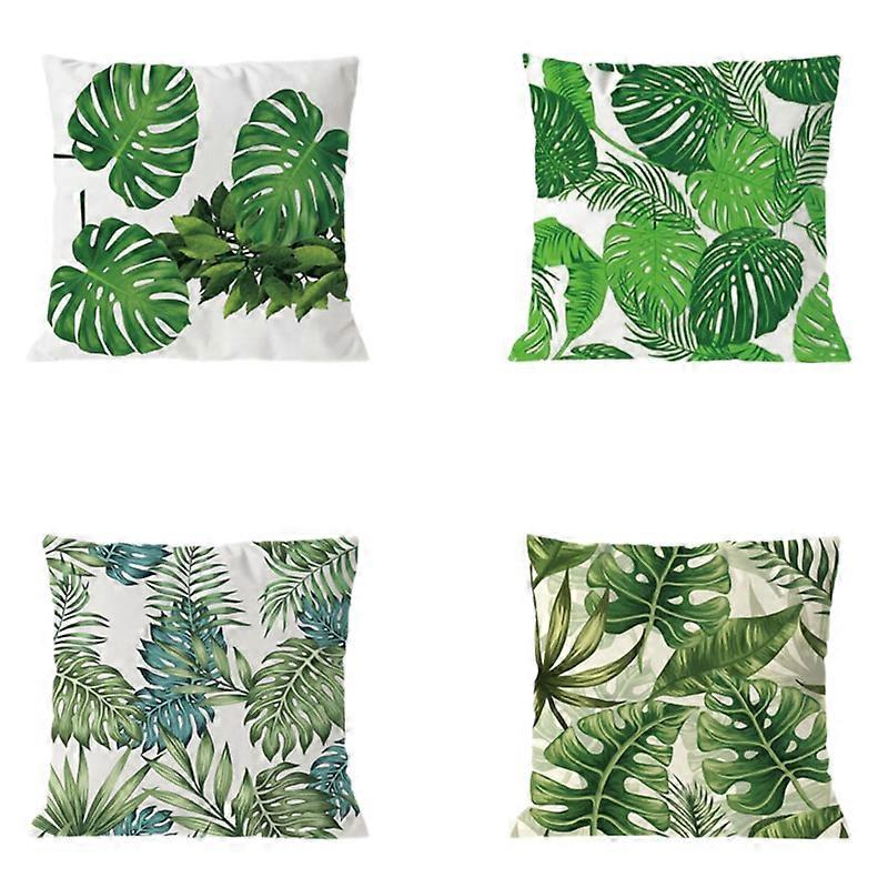 4Pcs Plant Cushion Cover Tropic Tree Green Throw Pillow Cover Palm Leaf Decorative Pillows Flower Cushion Cover 45x45Cm