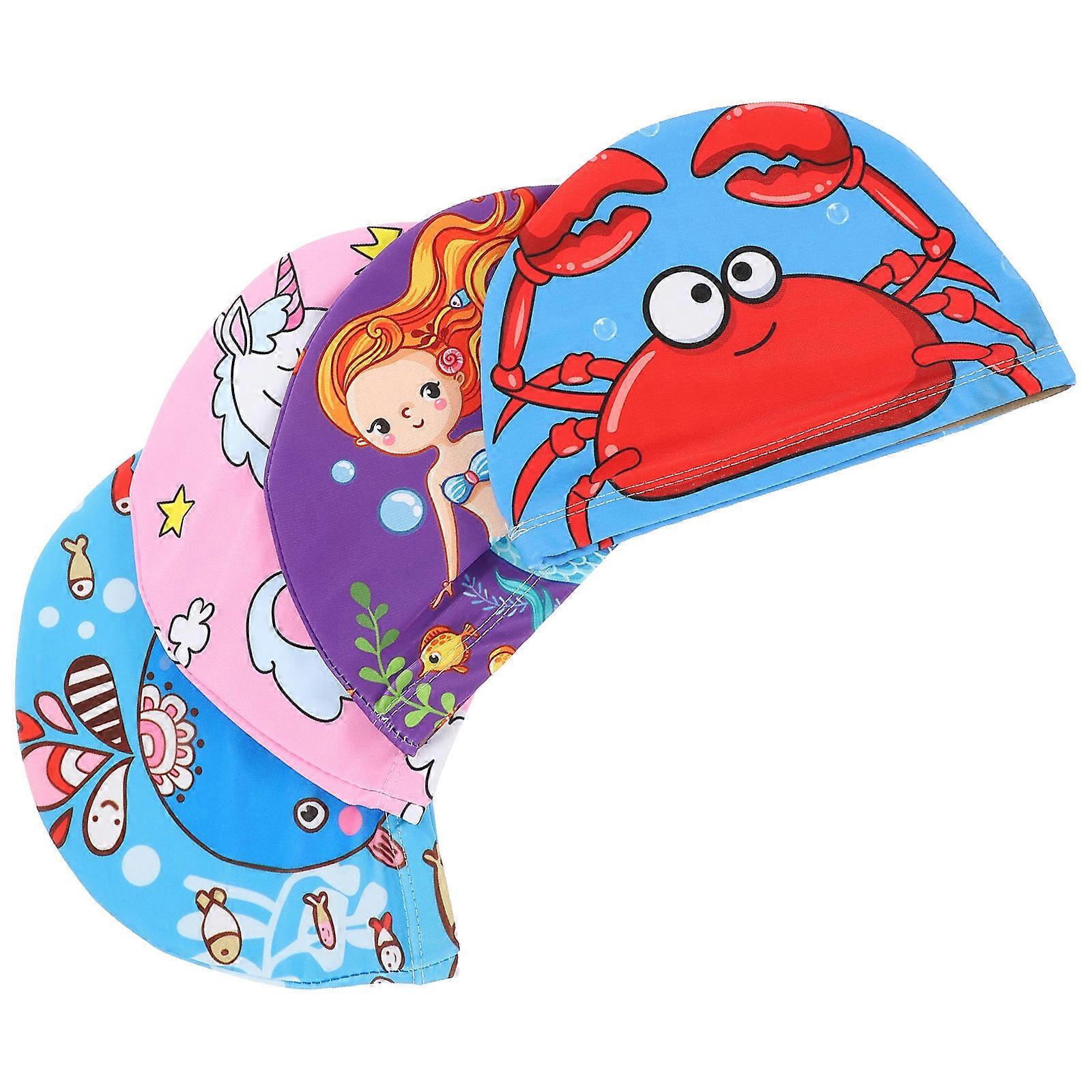 4pcs Breathable Swim Caps for Adults – Flexible Durable Swim Hats for Men Women with Stylish Crab Unicorn Mermaid for Pool Beach Swimming