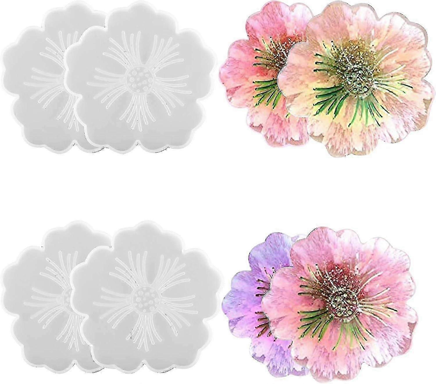 4 Pieces Flower Resin Molds, Irregular Coasters Silicone Mold Epoxy Resin Coasters for DIY Craft Dec