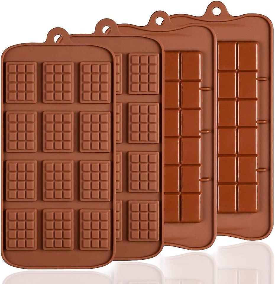 4 PCS Silicone Chocolate Molds, 2 Types of Break Apart Nonstick Candy Protein and Energy Bar Mold Ba