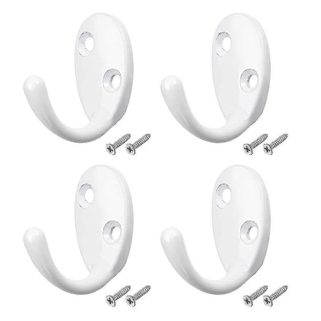 4 Pcs Wall Mounted Hook Robe Hooks Single Coat Hanger Hanging, Zinc Alloy, White