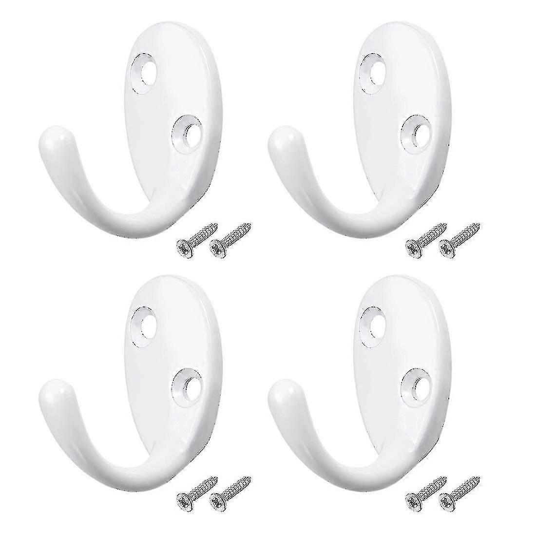 4 Pcs Wall Mounted Hook Robe Hooks Single Coat Hanger Hanging, Zinc Alloy, White