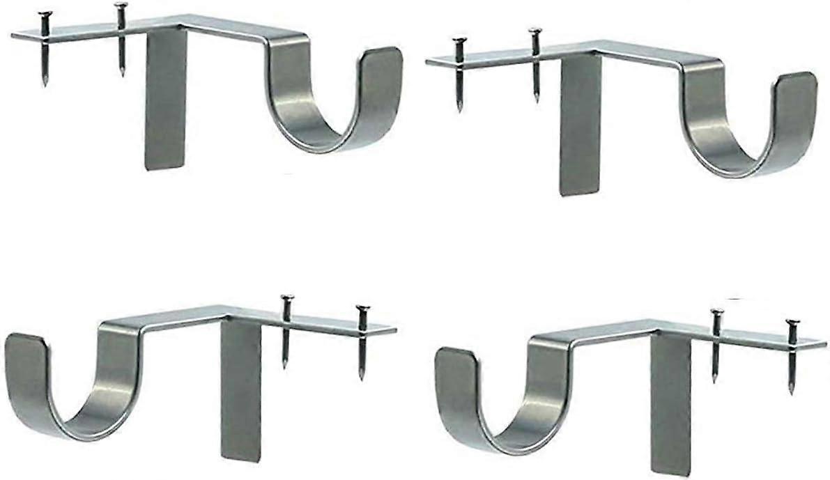 4pcs Curtain Pole Bracket Set,Heavy Duty Metal Curtain Rail Brackets with Screw,Curtain Rod Brackets for Wall Mount Windows Blinds,Silver