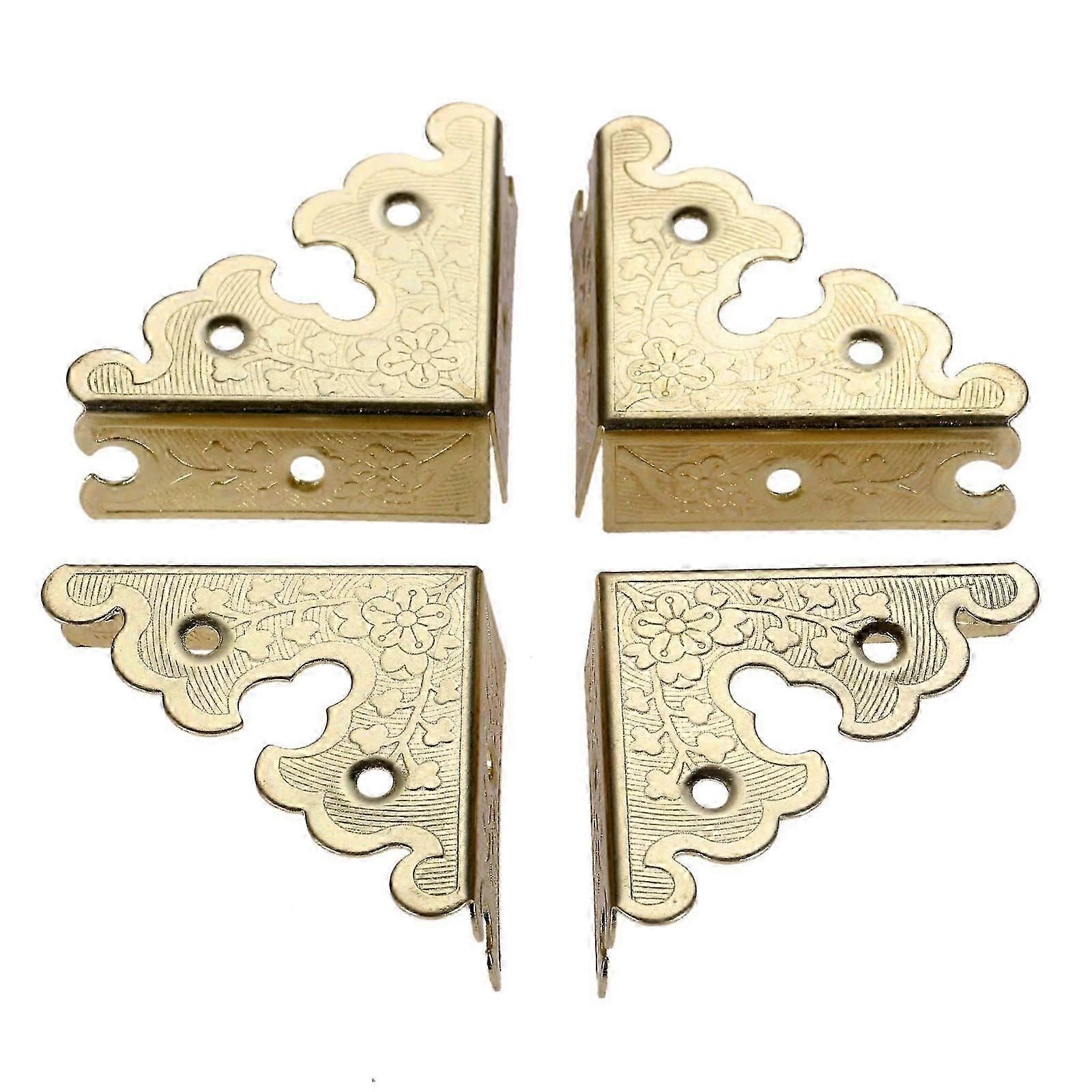 4Pcs Jewelry Wooden Box Chest Furniture Corner Protector Guard Edge Cover 1.34"x1.34"-Gold