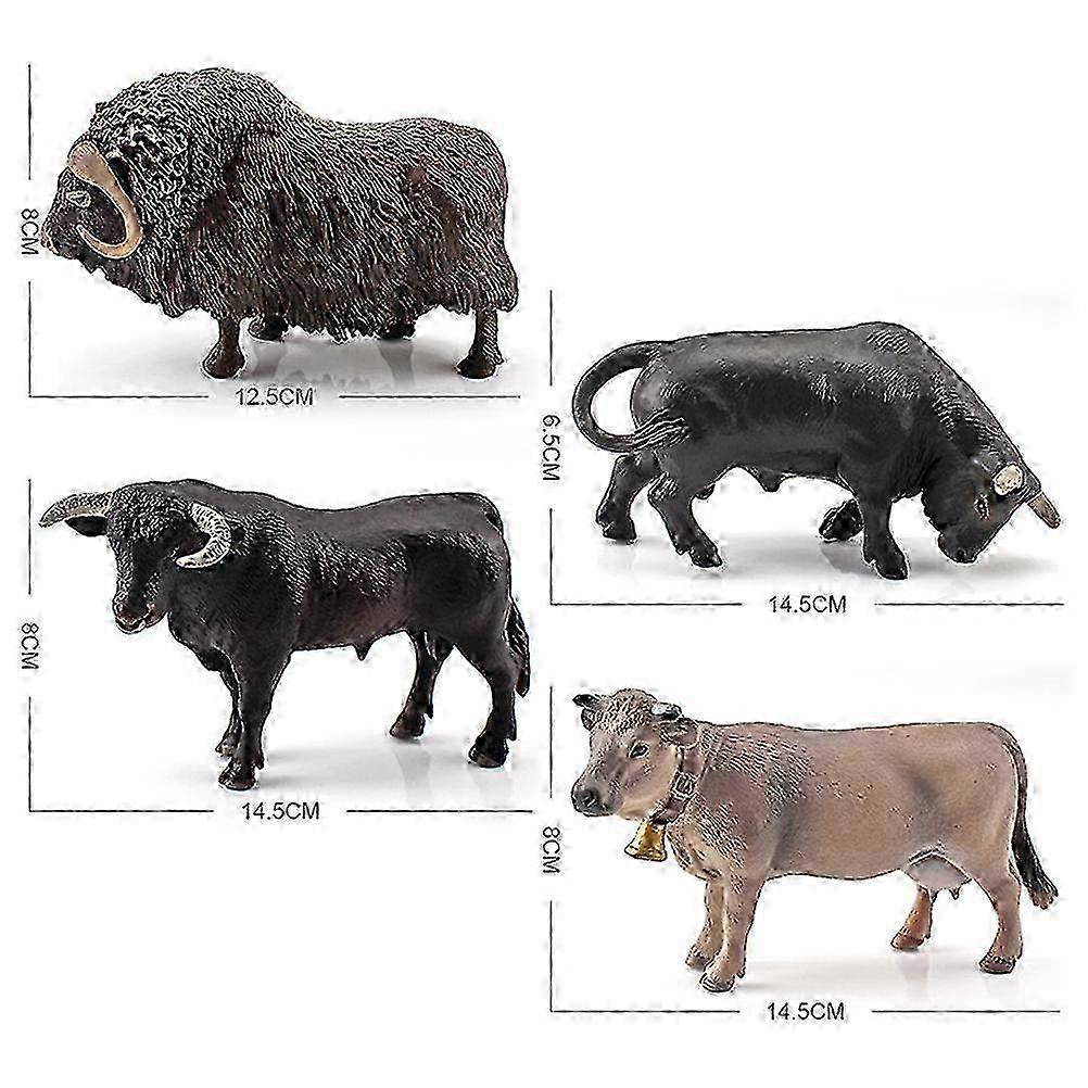 4 Pcs Simulation Farm Cow Cattle Ox Bull Figurine PVC Farm Animal Model Action Figure Home Decoration Kids Educational Toy