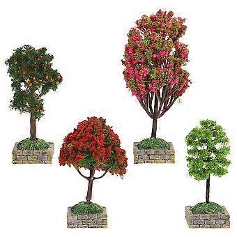 4pcs Miniature Scenery Trees with Base Dollhouse Fake Trees Mini Diorama Model Tree Plastic Micro Landscape Trees for Model Railroad Architecture Mate